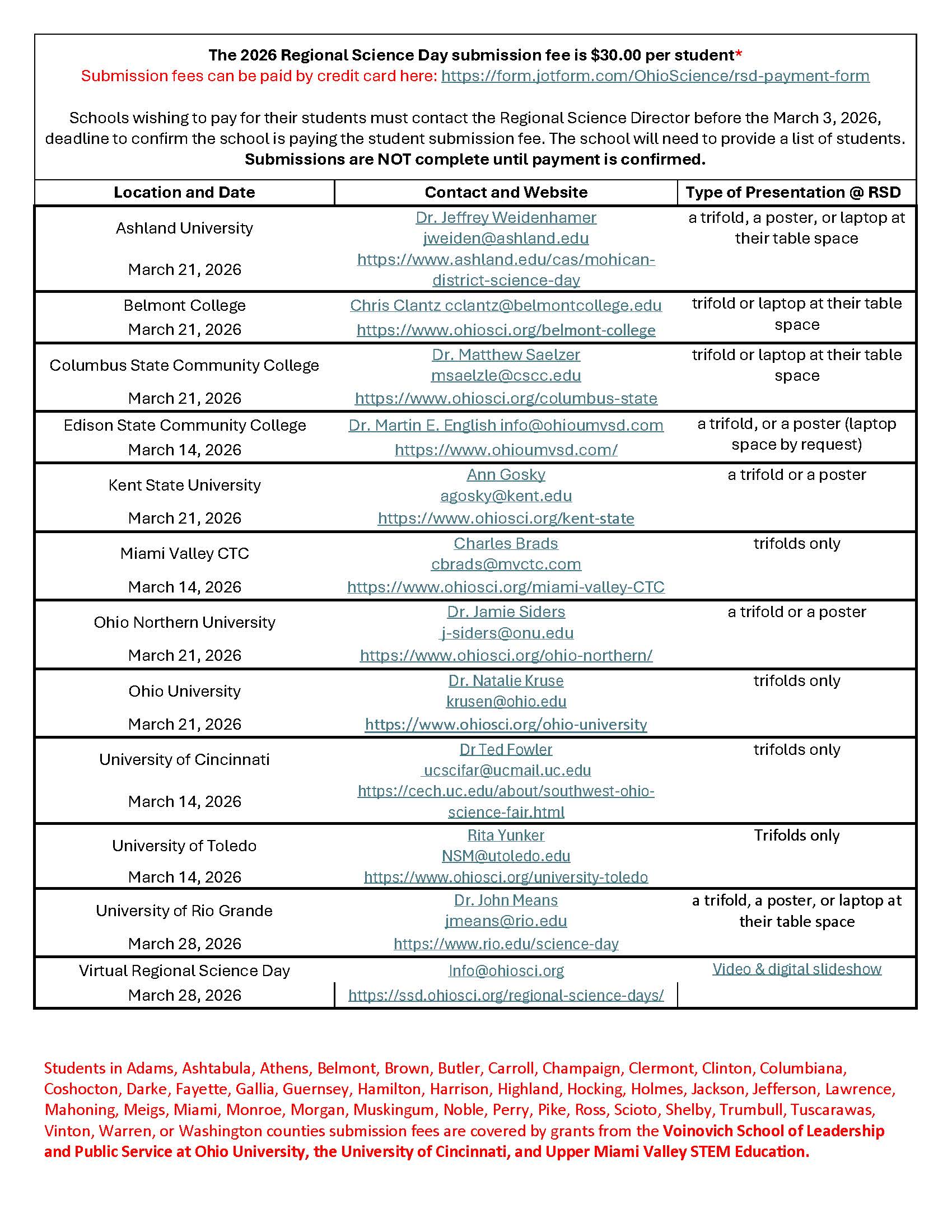 SCIENCE DAYS TEACHER’S GUIDE 2025-2026 WHY SCIENCE DAY? Student Question: "When will I ever use this stuff, anyway?" Project Type: Student- originated, personalized, inquiry-based hypothesis-based / meta-analysis or engineering design projects. ...